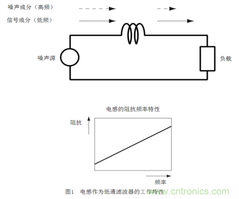 因此,如果將電感串聯插入噪聲通道,頻率較低的信號成分將容易通過,頻率較高的噪聲成分將不易通過。