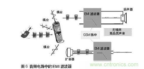 在音頻電路中如有電磁干擾(EMI),會(huì)出現(xiàn)嘶嘶、噼啪、嗡嗡等聲音,聲音質(zhì)量很差。手機(jī)用戶無(wú)法忍受這樣的干擾。因此,必須設(shè)法過(guò)濾音頻電路的電磁干擾。