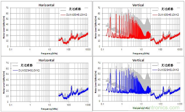 圖5:CAN中DLW43SH和DLW32SH系列的噪聲控制效果
