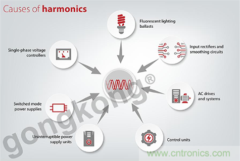 變頻器中使用的經(jīng)典整流器會產生高達50次(2.5 kHz)的諧波。諧波會在電網(wǎng)中產生相關的問題,但變頻器的普及,這個頻段已經(jīng)被EN 61000-3-4和3-2等標準所覆蓋。