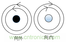 (2)當有兩條彼此靠近且平行的導線,如下圖所示,其中一個導體的電流向外流出,另一個導體的電流向內流入,如果流過這兩根導線的電流分別是信號電流和它的回流電流,那么這兩個電流是大小相等方向相反的,所以它們的磁場也是大小相等,而方向是相反的,因此能相互抵消。