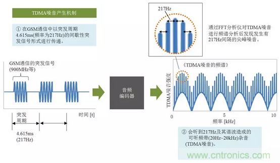 圖2:GSM通信中TDMA噪音發生機制