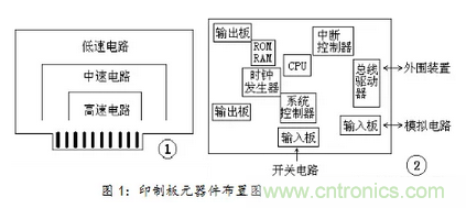 在印制板布置高速、中速和低速邏輯電路時(shí),應(yīng)按照?qǐng)D1-①的方式排列元器件。