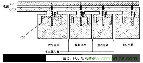 (2) 將低電平的模擬電路和數(shù)字電路分開,避免模擬電路、數(shù)字電路和電源公共回線產(chǎn)生公共阻抗耦合。