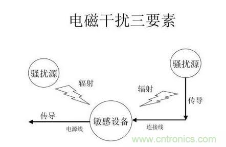 電源在向系統(tǒng)提供能源的同時(shí),也將其噪聲加到所供電的電源上。電路中微控制器的復(fù)位線,中斷線,以及其它一些控制線最容易受外界噪聲的干擾。電網(wǎng)上的強(qiáng)干擾通過(guò)電源進(jìn)入電路,即使電池供電的系統(tǒng),電池本身也有高頻噪聲。模擬電路中的模擬信號(hào)更經(jīng)受不住來(lái)自電源的干擾。