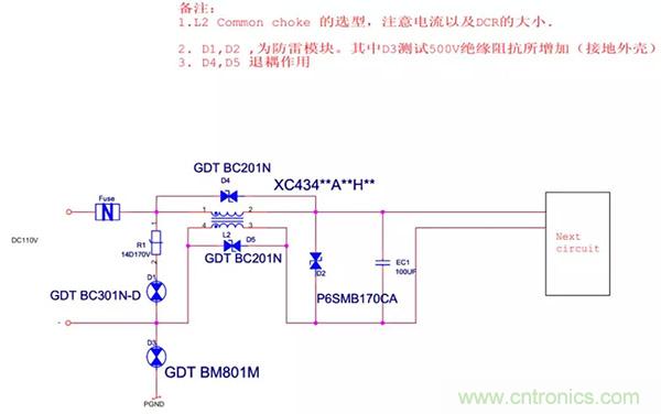 9、DC110V接口EMC設計標準電路