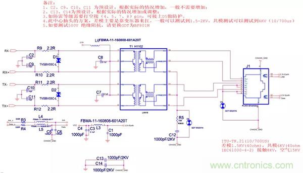 30、以太網EMC(浪涌)設計標準電路(差模要求較高方案)