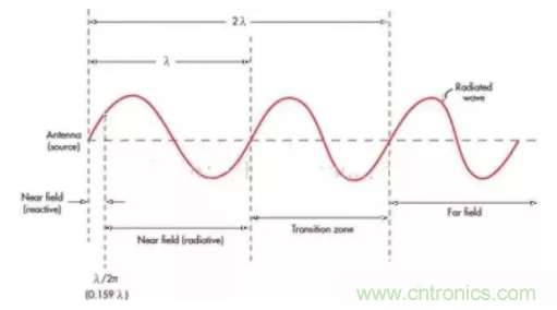 對近場似乎還沒有正式的定義,它取決于應用本身和天線。通常,近場是指從天線開始到1個波長(λ)的距離。波長單位為米,公式如下: