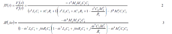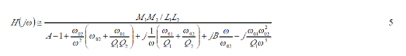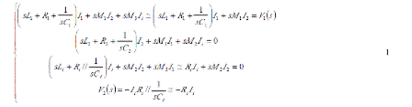 這里V1是發(fā)射信號(hào)的電壓, V2是接受信號(hào)的電壓,則測(cè)試回路的傳輸函數(shù)是由下式所決定的。