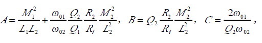這里ω 01與ω 02(ω02》ω01)分別是由發(fā)射線圈 LC諧振回路與待測(cè) LC諧振回路的諧振角頻率,實(shí)際應(yīng)用時(shí) Q2在100左右,而 Q1小于1。此時(shí)式3可簡(jiǎn)化為: