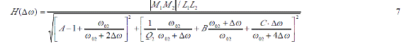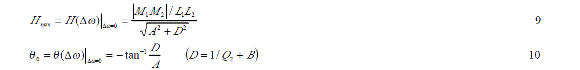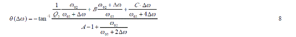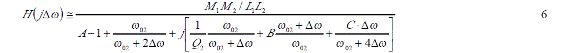 如果實(shí)際工作角頻率與待測(cè)諧振角頻率間的角頻率差 Δω控制在遠(yuǎn)小于 ω02,這樣可以無(wú)視 Δω的高次項(xiàng),式5可以作進(jìn)一步簡(jiǎn)化。