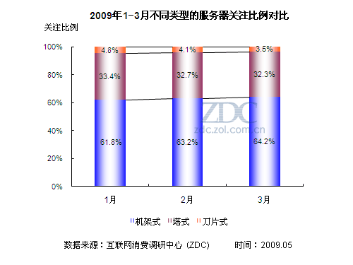 (圖)2009年1-3月不同類型的服務(wù)器關(guān)注比例對(duì)比