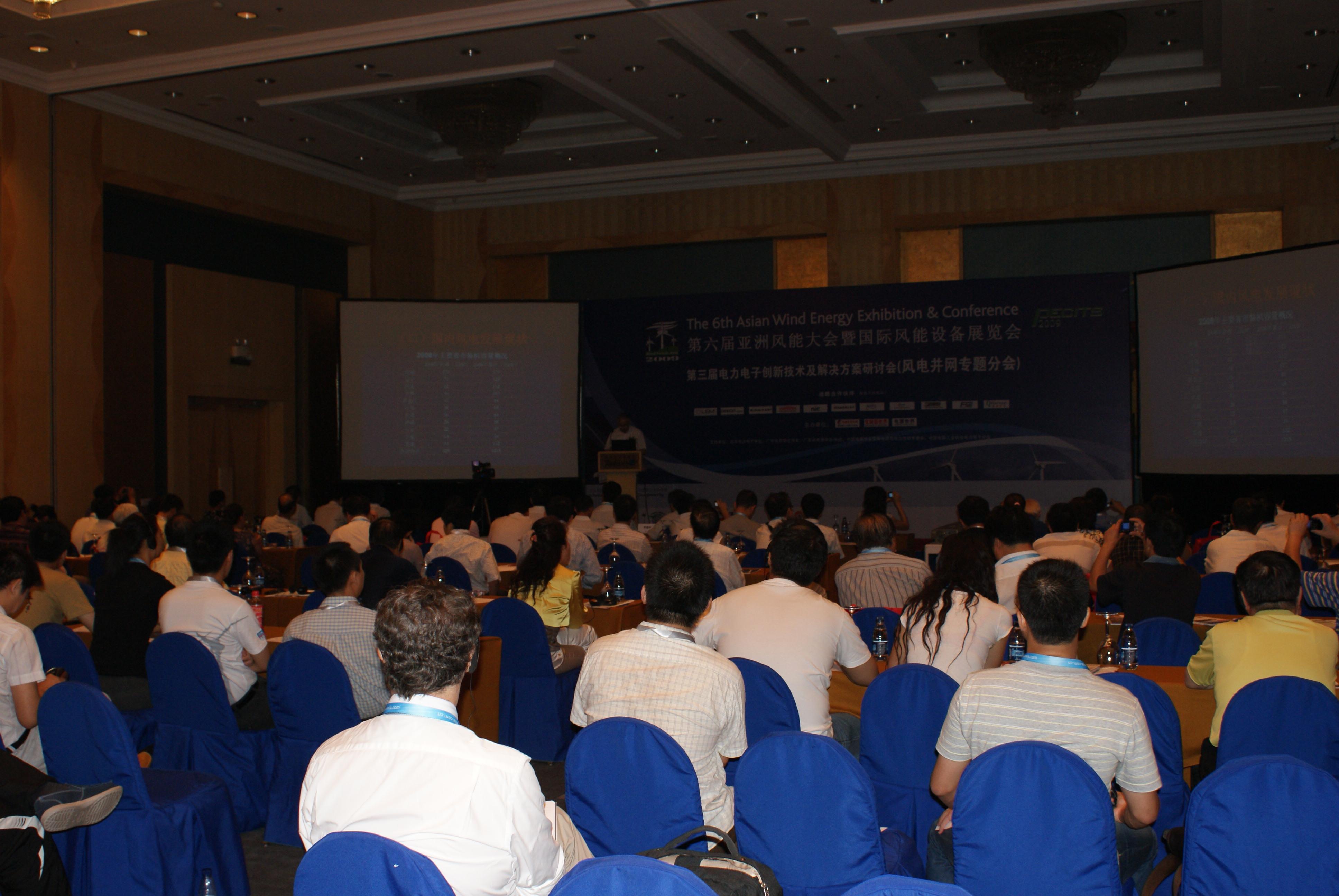 上海鷹峰電子科技有限公司項目工程師王宏凱先生對“電力電子無源器件在風電中的解決方案”進行了詳細闡述,并表示鷹峰將極大關注這一領域的發展,研發更高端的適合用戶的產品和方案。北京景新電氣技術開發有限責任公司總經理羅本東先生作為電力電子領域的資深專家,不僅有深厚的理論功底,而且近年來在許多工程項目中加以實踐,他與大家分享了自己對電力電子技術在風電中廣泛深入應用的諸多心得,讓與會代表產生許多共鳴。榮信電力電子股份有限公司風電并網研究室主任林永先生最后做了題為“風電與電網的整合”的報告,從而結束了本場活動的議題。