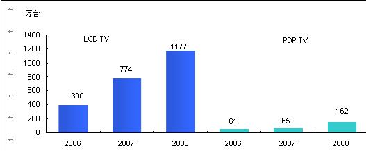 圖1 2006-2008年中國(guó)FPD TV市場(chǎng)年度規(guī)模增長(zhǎng)