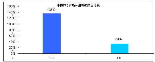 圖2 2009年1-4月中國(guó)FPD TV市場(chǎng)高清產(chǎn)品同比增長(zhǎng)
