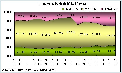 隨著彩電市場產品技術、功能的進一步演化,以及不同地區(qū)、不同人群需求的多樣化,中國彩電市場向高端和低端二個市場分化趨勢更加明顯:趨優(yōu)市場,高端消費群體更樂意花更多的錢買高品質、高價值、多功能且充滿感情色彩的產品和服務;趨低市場,低端消費群體更在意能用相對低廉的價格購買可滿足針對性需求的高性價比產品和服務,平板電視的啞鈴型市場格局也正逐步呈現(xiàn)出趨勢。