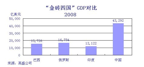 圖3:2008年金磚四國GDP對比。數據來源:高盛