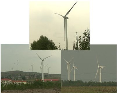 在遼寧康平縣的一個(gè)風(fēng)電場(chǎng),記者看到幾十臺(tái)大型風(fēng)機(jī)靜靜的矗立在農(nóng)田里,在給風(fēng)力發(fā)電機(jī)配備的變電站里,工作人員也在忙著施工。