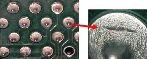 如上所述,若可見破裂底部、收縮孔不與鉛、焊盤或焊壁相接觸,1、2、3類都非缺陷。以下照片是取自Kester實驗室的范例。