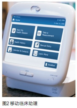其次是醫(yī)療信息化產(chǎn)品,比如上海交大生物醫(yī)學(xué)工程研究所開發(fā)的生命體征監(jiān)測無線服務(wù)平臺。平臺的核心就是一個(gè)多參數(shù)體征測量儀(iCare)、GSM模塊和網(wǎng)絡(luò)、智能分析軟件和服務(wù)器,可以部署在社區(qū)和醫(yī)院,這樣類似的系統(tǒng)國內(nèi)已經(jīng)成功地應(yīng)用在工業(yè)控制中了,只要把多參數(shù)體征測量儀設(shè)計(jì)完善好,系統(tǒng)構(gòu)建和實(shí)施難度不大。再如,Intel公司的移動(dòng)臨床助理(Mobile Clinical Assistant)(如圖2),核心是Intel 高性能、低功耗移動(dòng)便攜系統(tǒng)方案,可以很方便地布置在醫(yī)院病房、病人家里和醫(yī)生的診所,經(jīng)過專業(yè)醫(yī)療儀器廠家的定制和生產(chǎn),裝置已經(jīng)完全符合醫(yī)療上的密封、消毒和安全的要求。國內(nèi)嵌入式系統(tǒng)企業(yè)應(yīng)該完全有能力設(shè)計(jì)出類似的裝置,而且如果采用國產(chǎn)ARM SoC 方案,體積還能更小,價(jià)格更便宜,功耗還能低。
