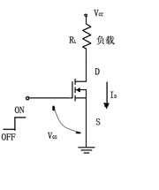 N溝道MOSFET可以組成最簡單的負載開關,如圖1所示。負載接在電源與漏極之間(負載可以是直流電動機、散熱風扇、大功率LED、白熾燈泡或螺管線圈等)。在其柵極上加一個邏輯高電平,則N-MOSFET導通,負載得電;在其柵極加一個邏輯低電平,則N-MOSFET關斷,負載失電。