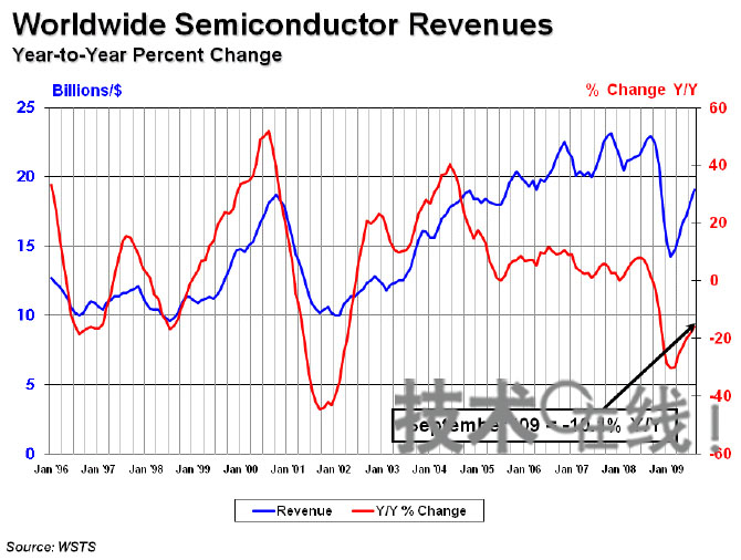 09年Q3全球半導體銷售額環比增長19.7%,復蘇跡象明顯