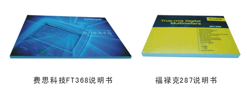 福祿克287里一個(gè)塑料袋也沒有,估計(jì)是本著環(huán)保理念,可是16國語言說明書厚厚一本,有用的只有1/16,看來理念不統(tǒng)一,但你可用來學(xué)語言。費(fèi)思FT368手冊是中文,編寫很細(xì)很專業(yè)。