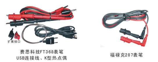 福祿克287的鱷魚夾手感好很多,比對手檔次高。費(fèi)思FT368的表筆很實(shí)用和高檔,可以在其擴(kuò)展接口上插測試線。另外費(fèi)思FT368的K型熱點(diǎn)偶很正點(diǎn),價(jià)值不菲。