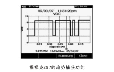 福祿克的287 數(shù)字萬用表能夠獲此殊榮,是因?yàn)槠溟_發(fā)出萬用表有史以來最先進(jìn)的高級功能:真有效值電子記錄,它具有趨勢捕獲功能,能夠快速記錄設(shè)計(jì)性能,并以圖形方式顯示發(fā)生的情況。