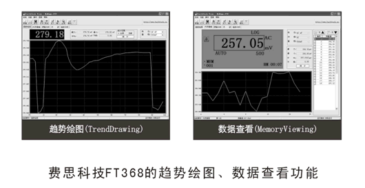 費(fèi)思FT368 標(biāo)配FaithtechView測試包軟件(5種功能:趨勢繪圖,數(shù)據(jù)記錄分析,邏輯分析,單通道示波,諧波分析);對于福祿克287,F(xiàn)lukeView測試軟件包是選配(2種功能:趨勢繪圖,數(shù)據(jù)記錄分析),選配價(jià)格2300元,這個(gè)價(jià)格有點(diǎn)離譜。