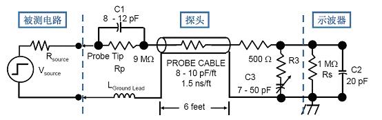 實(shí)際上,每個(gè)示波器探頭都有其輸入阻抗,這個(gè)阻抗是特性阻抗,不僅是因?yàn)殡娮柙斐傻模€包含了電容和電感等因素。由于探頭引入的額外負(fù)載,所以探頭接入被測(cè)電路后,會(huì)從信號(hào)中汲取能量,實(shí)際上就會(huì)影響被測(cè)電路,最惡劣的后果就是電路本來是正常工作的,引入示波器探頭后卻不正常了,工程師就容易得出與事實(shí)相反的結(jié)論。因此我們分析測(cè)量結(jié)果時(shí)必須考慮探頭的負(fù)載特性以及測(cè)試電路的阻抗匹配性。