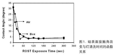 半導體清洗技術的關注點隨時間而改變。早年關注的是大微粒和金屬污染物,實際上,當時半導體器件故障常常是由于襯底晶圓中的高缺陷密度引起,而不是表面污染引起的。隨著微粒和金屬污染的數量級逐漸減小,以及對這方面的污染控制非常有效,現在更多注意的是有機污染和表面狀態相關問題。如圖1指出的,用簡單的燈清洗法可以把有機污染從Si表面除去。此外,應特別注意溶解在水內和氣相的臭氧在控制有機污染中的作用。另一問題是對清洗方法目標監察的多樣性,因為FEOL和BEOL清洗要求不同,后者關注的是CMP后清洗。