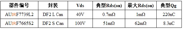 AUIRF7739L2 和 AUIRF7665S2 均符合 AEC-Q100 標準,是在 IR 要求零缺陷的汽車質量理念下研制而成的,所采用的環(huán)保材料既不含鉛,也符合有害物質管制指令 (RoHS)。