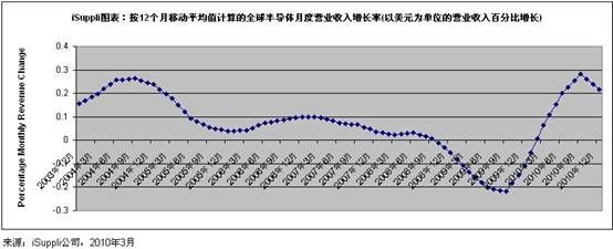 據(jù)iSuppli公司,按12個月移動平均值計算,2010年月度半導體營業(yè)收入將以史上最強勁的速度反彈。