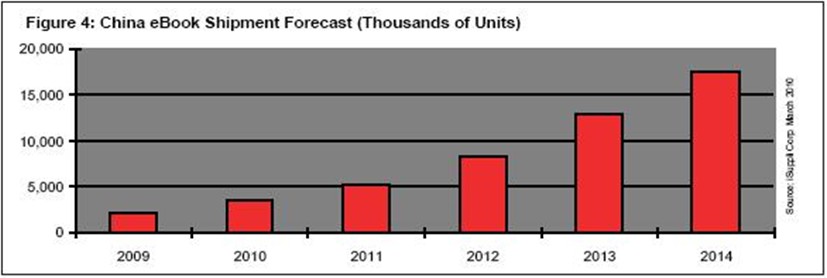 圖4所示為iSuppli公司對2009-2014年中國電子書市場的預測。