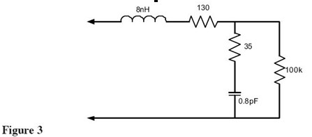 查看Figure 1中的等效電路,可以看到諧振頻率(1/(2*PI*sqrt(LC))給出)點的探頭輸入阻抗是0歐姆——完全消除了被測信號!最近一些制造商開始注意這個問題并設(shè)計具有更好輸入特性的探頭。Figure 3展示了這種探頭(Probe A)的等效電路。這是許多給出這個探頭精確依賴于尖端和地夾的等效負(fù)載模型之一。這個探頭還有一個諧振點大概是2GHz,該頻點的阻抗被電阻限制到大約165歐姆。