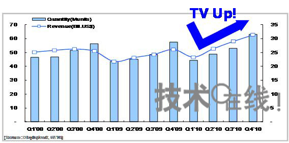 回顧此前電視市場的發(fā)展趨勢,可以作出今后市場的推動因素較多,而且比較強(qiáng)的判斷。首先,低迷的經(jīng)濟(jì)形勢將轉(zhuǎn)向復(fù)蘇,向數(shù)字電視過渡的地區(qū)也會增加。在中國,目前液晶電視的銷量增加,替代需求不斷擴(kuò)大的地區(qū)很多。并且,還有LED背照燈液晶電視、3D電視及IPTV(internet protocol terevision,網(wǎng)絡(luò)協(xié)議電視)等的紛紛亮相,世界杯足球賽也將于2010年上半年舉行等。