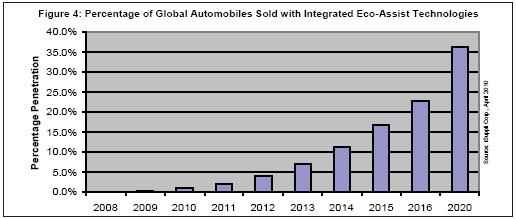 據iSuppli公司,人們對于乘用車和卡車對環境的影響日益關注,將刺激節能駕駛輔助系統(eco-assist system)在未來幾年大幅增長,預計2020年將有略多于三分之一的汽車整合節能導航系統,而2010年該比例還不到1%。