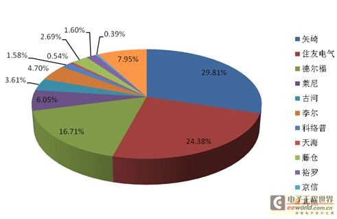 2009年全球汽車線束主要廠家市場占有率