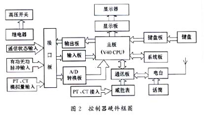 系統的終端控制器具有兩路單獨的PT、CT輸入,可以同時監控兩路母線的用電,裝有一臺CRT顯示器,可以將監控數據以圖形方式顯示出來,由于顯示數據較多,故通過鍵盤選擇需要查看的數據。
