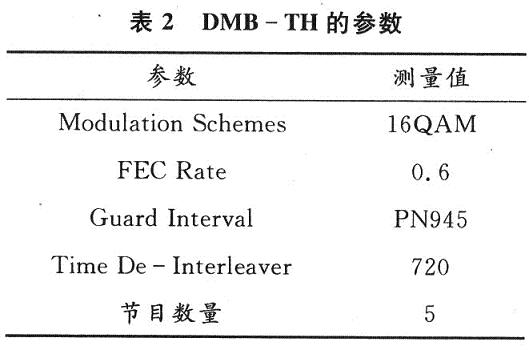 在完成了USB數(shù)字電視接收棒的系統(tǒng)總體方案設(shè)計(jì)之后,根據(jù)所選用的芯片,參照相應(yīng)技術(shù)手冊(cè),設(shè)計(jì)了電路原理圖并制作了印刷電路板。在硬件制作期間,同時(shí)進(jìn)行軟件的開發(fā)工作。在硬件制作完成后,利用KEILC和VC6++進(jìn)行了調(diào)試。利用筆記本電腦在室內(nèi)和運(yùn)動(dòng)狀態(tài)下分別進(jìn)行了長(zhǎng)時(shí)間(12h)測(cè)試,USB端口接收數(shù)據(jù)的速度穩(wěn)定在1.8MB/s。測(cè)得廈門地區(qū)國標(biāo)DMB-TH數(shù)字電視的參數(shù)見表2。