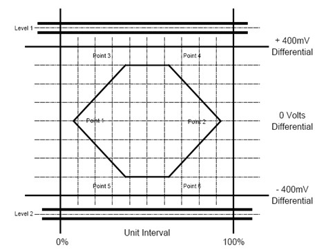 本次測試將主要驗證產品上兩個USB高速主機接口的眼圖。對于USB2.0物理層的眼圖測試,USB IF在USB2.0 SPEC中有著明確的眼圖模板定義如下: