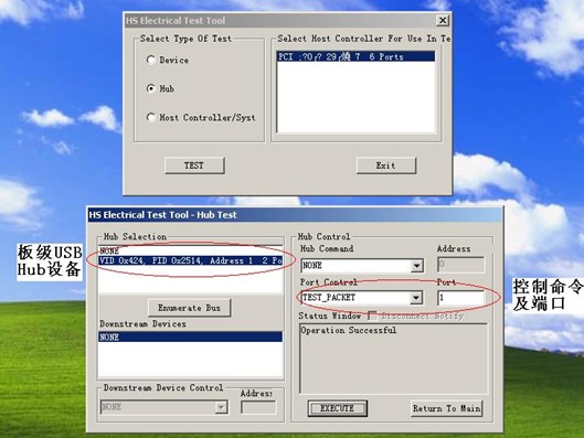 (1)原來我們采用的方案只支持一個USB 主機接口,所以在片上只集成一個USB 主機 Controller,測試命令也是基于主機控制器類型的。而我們的板級應用是采用了一個USB Hub與主機 Controller中繼來實現多端口應用的擴展,根本無法進行Hub Down Stream Facing Port的測試。