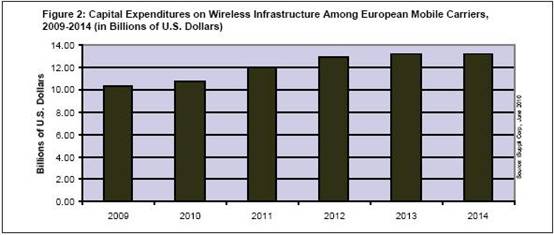 - 2010年歐洲移動運營商在無線基礎設施方面的投資將略有增長