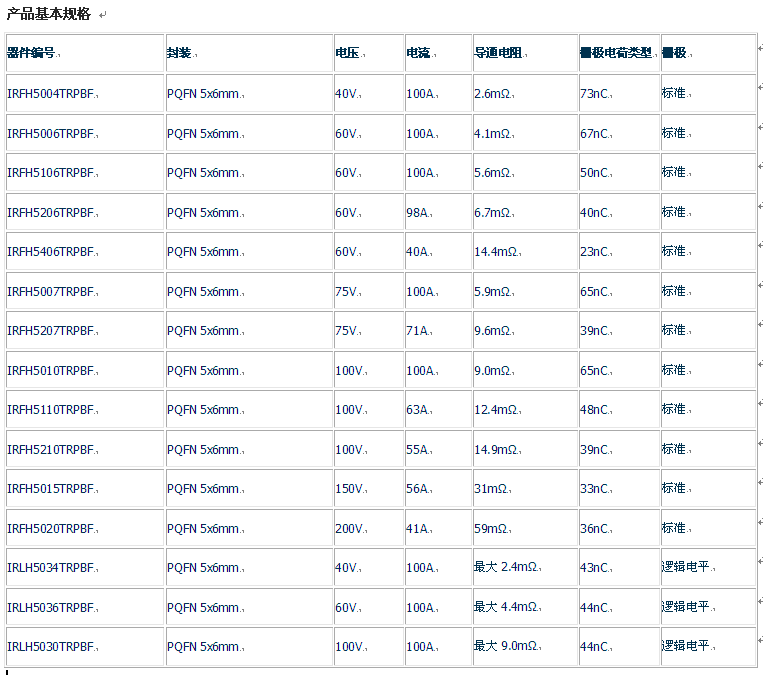 國(guó)際整流器(IR) 7月2日宣布,將拓展HEXFET功率MOSFET產(chǎn)品組合,提供完整的中壓器件系列,其中采用了5x6mm PQFN封裝及優(yōu)化銅夾和焊接芯片技術(shù)。