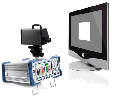 進行平板電視質(zhì)量檢測的典型配置首先是需要一臺測試信號發(fā)生器,比如R&S DVSG。信號源發(fā)生器過HDMI接口輸出無壓縮的測試圖卡,其優(yōu)異的信號質(zhì)量可以作為理想的參考源。此時,通過科尼卡美能達的CS200/CS2000色度分析儀,可進行色彩參數(shù)的測試。在可調(diào)測試角功能下,CS2000可進行高達100,000:1的對比測試,因此可提供極高的測試精度。通過USB接口將科尼卡美能達分析設(shè)備和信號發(fā)生器DVSG相連,DVSG中預(yù)裝的評估軟件將會直接控制色彩分析儀進行測試,測試結(jié)果直接顯示在DVSG的屏幕上,無需外接電腦。