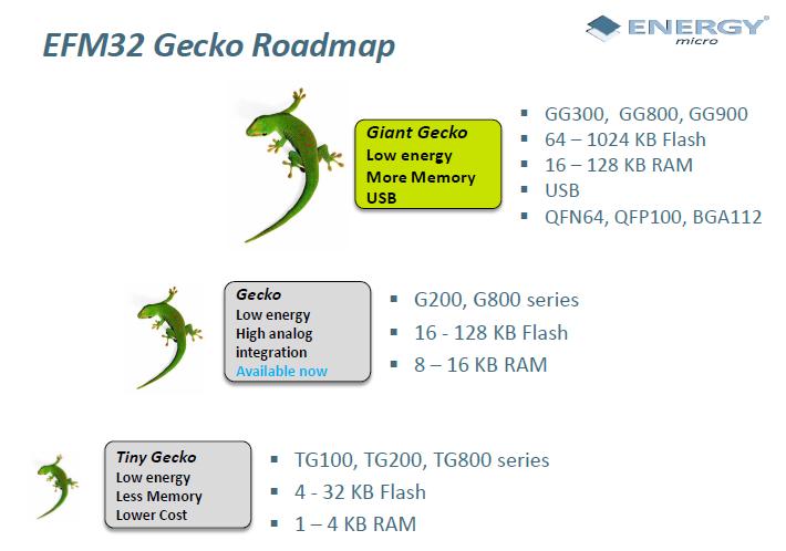 • 新的Giant Gecko系列提供更大的Flash閃存,部分產(chǎn)品提供USB外設(shè)