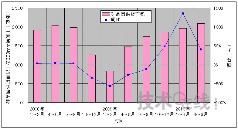 國際半導(dǎo)體制造設(shè)備材料協(xié)會(huì)(SEMI)公布了2010年第二季度(2010年4~6月)的全球半導(dǎo)體用硅(Si)晶圓供貨業(yè)績。發(fā)布資料顯示,硅晶圓供貨面積在2009年第一季度(2009年1~3月)觸底后連續(xù)五個(gè)月增加,突破了2000萬片(按300mm晶圓換算,下同)大關(guān)。超過了此前的歷史最高記錄——2008年第二季度(2008年4~6月)的1946萬片,刷新了歷史記錄。