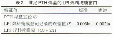 LDI對焊料掩膜窗口的潛在影響在表2中所示。制造廠商所能實現的最小液體可成像(LiquidPhotoima8eable,簡稱LPI)焊料掩膜允許誤差(x)是因為多層層壓板的影響導致材料移動,由于鍍覆和烘干的影響導致材料尺寸的變動以及由于環境的變化導致在成像l工藝過程中變化的共同作用而產生的。對于焊料掩膜成像的后期是綜合的,因為常規的焊料掩膜成像要花費較長的時間(20s~40s),