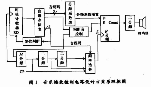 音樂播放控制電路設計方案原理框圖如圖1所示。